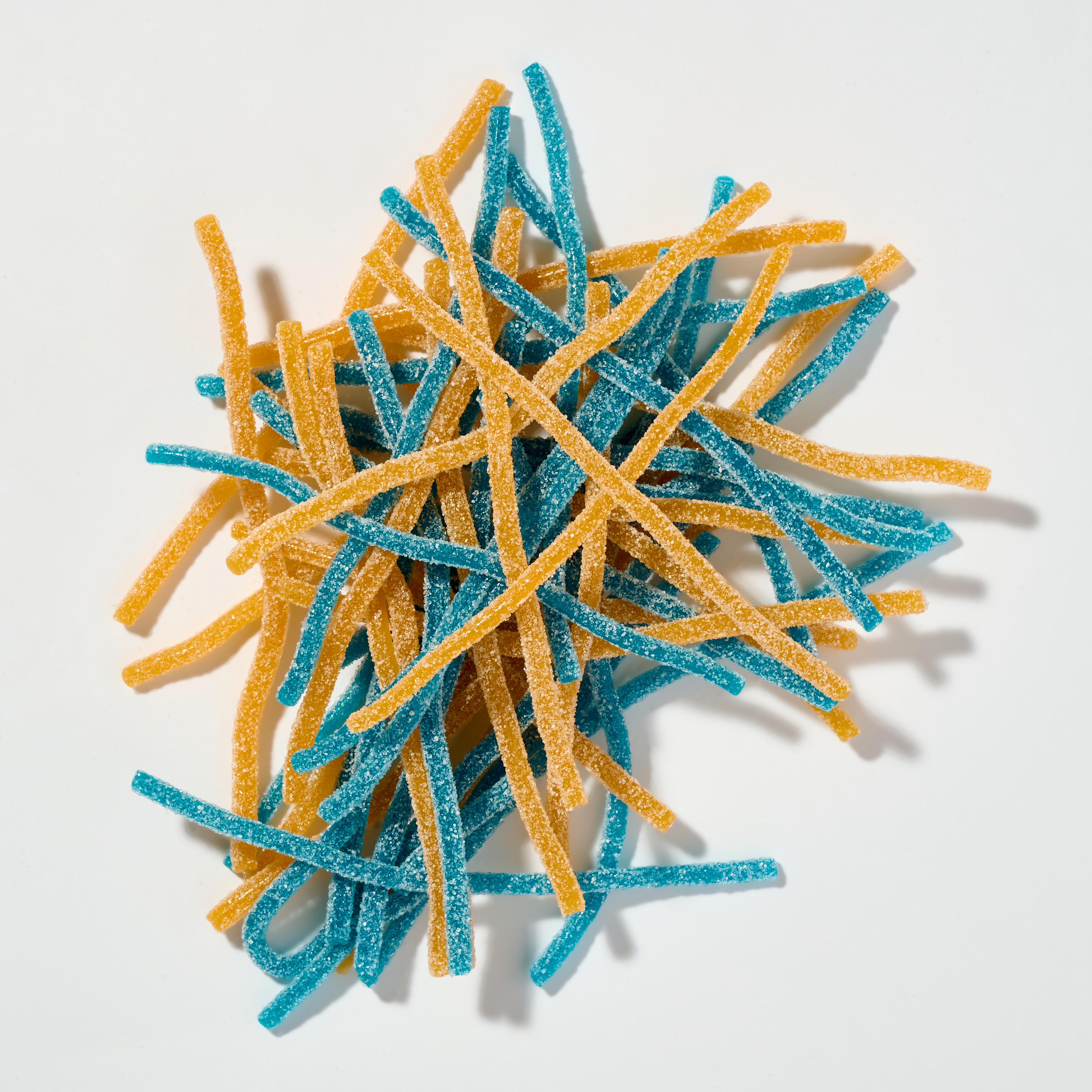 Мармелад в виде "спагетти" с большим разнообразием вкусов.