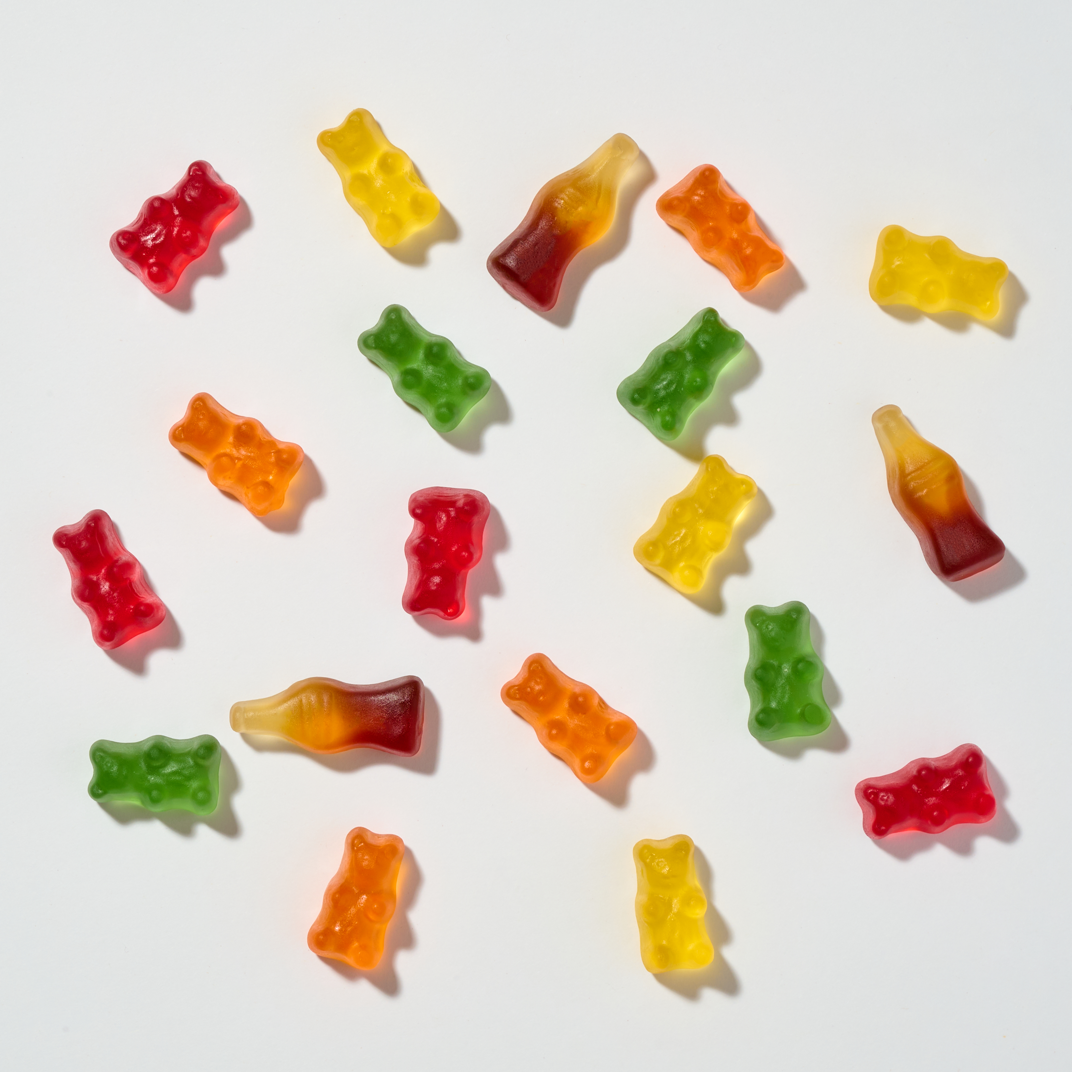 Жевательный мармелад со вкусом лимона, клубники, апельсина, яблока и колы.
