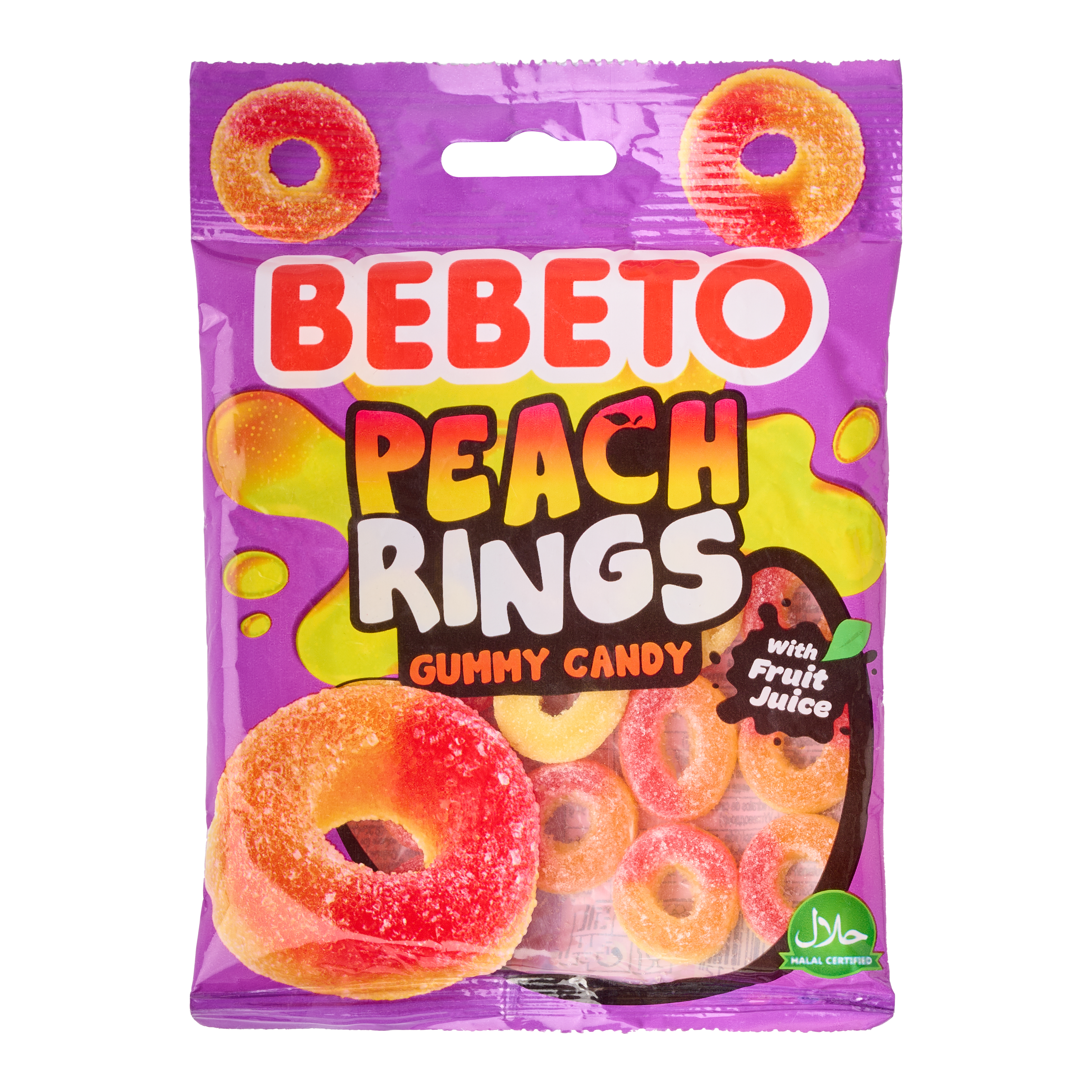 Мармеладные колечки со вкусом персика и в сахарной обсыпке с лёгкой кислиной.